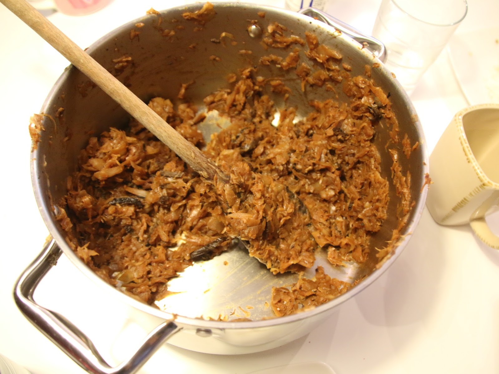 Bigos wychodzi pyszny, wędzone tofu pięknie się z nim komponuje, koniecznie dodajcie wino, śliwki i suszone prawdziwki, jest tym lepszy im dłużej stoi i jest podgrzewany. Osoby, które go próbują zawsze pytają, a co w bigosie przypomina tak mięso w smaku, to zasługa wędzonego tofu.