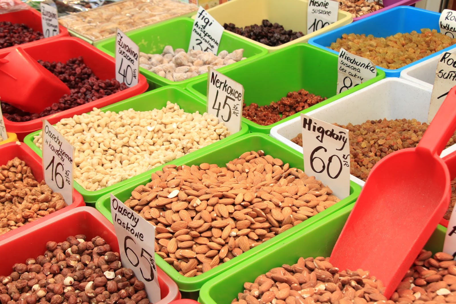 Jestem bardzo szczęśliwa, bo mamy w Warszawie bazar z prawdziwego zdarzenia w samym centrum miasta. Kiedyś kochałam ursynowski bazar Na Dołku, ale kiedy poznałam Hale Mirowskie, szybko go porzuciłam i zakochałam się w nowym miejscu. Swego czasu pracowałam obok Hal i rano przed pracą, w okresie letnim, kupowałam sobie mnóstwo pięknych i tanich owoców: maliny, borówki, truskawki w wielu odmianach, brzoskwinie, mango,ananasy itp. Zachwycają mnie też stoiska z ziołami i kwiatami do posadzenia na balkonie, a dla wybrańców w ogrodzie lub na działce. Ale to nie wszystko, uwielbiam też kupować tam orzechy, kasze i zioła suszone. Szczególnie polecam te liofilizowane, które dzięki specjalnemu procesowi suszenia w obniżonej temperaturze, zachowują więcej aromatu i żywy kolor. Niestety ostatnio zauważyłam że ich nie ma, ale pani, która je sprzedaje mówi, że będą. Z tej serii kupowałam: bazylię, tymianek i oregano. Na stoisku z przyprawami znajdziecie np. paprykę słodka wędzoną za 2 zł taka torebeczka jak widać na zdjęciach.
